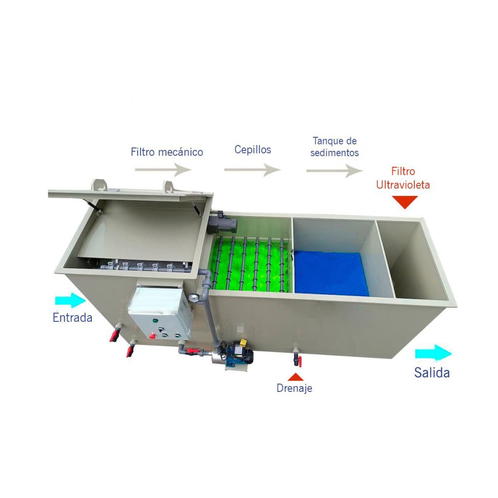 2. Filtración mecánica: elimina sólidos como restos de alimento y desechos.